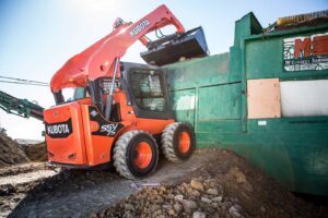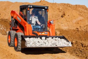The Kubota SSV75 Skid Steer Loader doesn’t just boast quality Kubota craftsmanship, it backs it up with a 74.3 horsepower engine and tipping load of 5,380 pounds. Whether making use of pallet forks, bale spears, grapples or augers, the SSV75 ensures you’re operating with precision, efficiency and, most importantly, confidence.